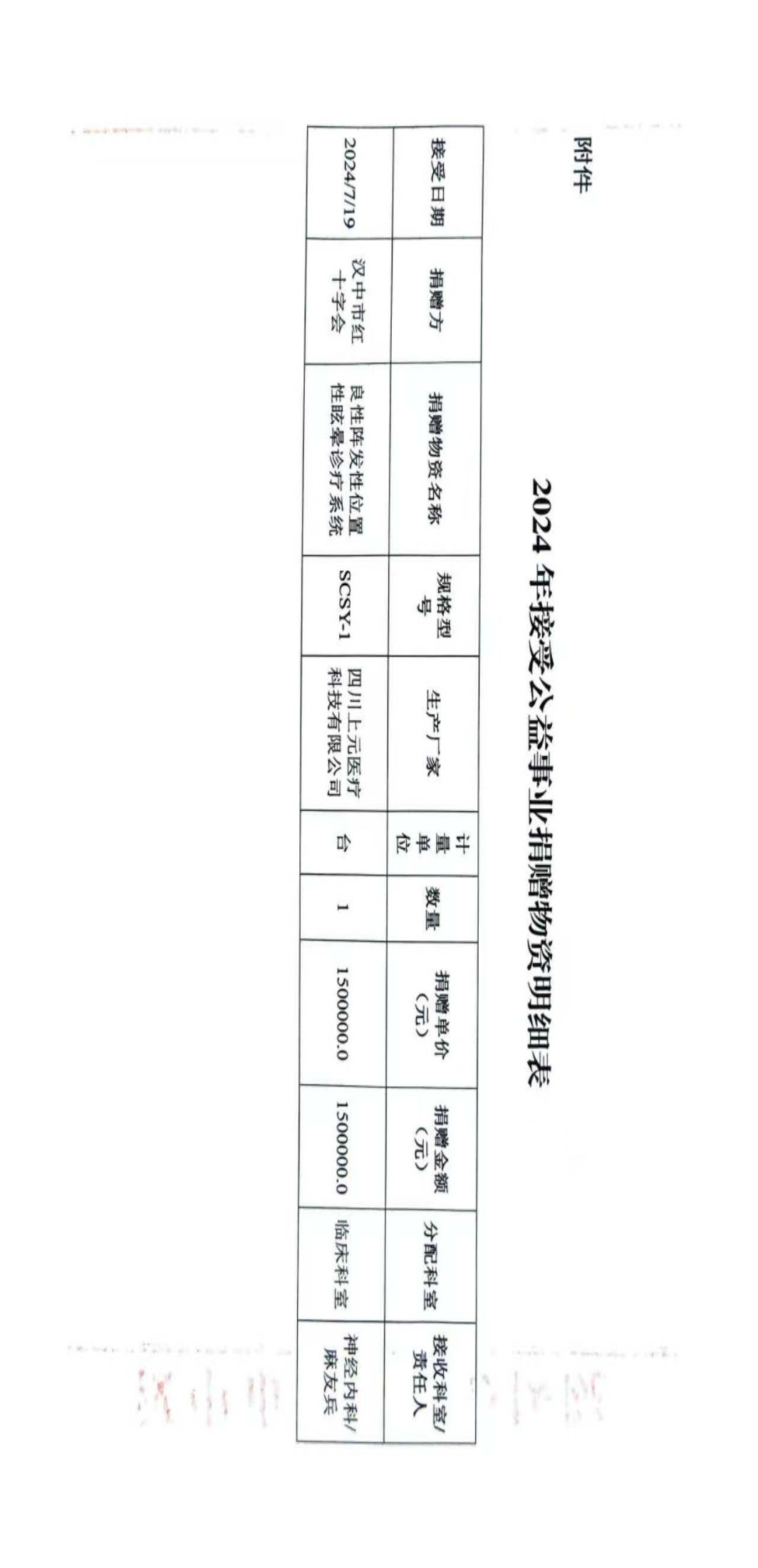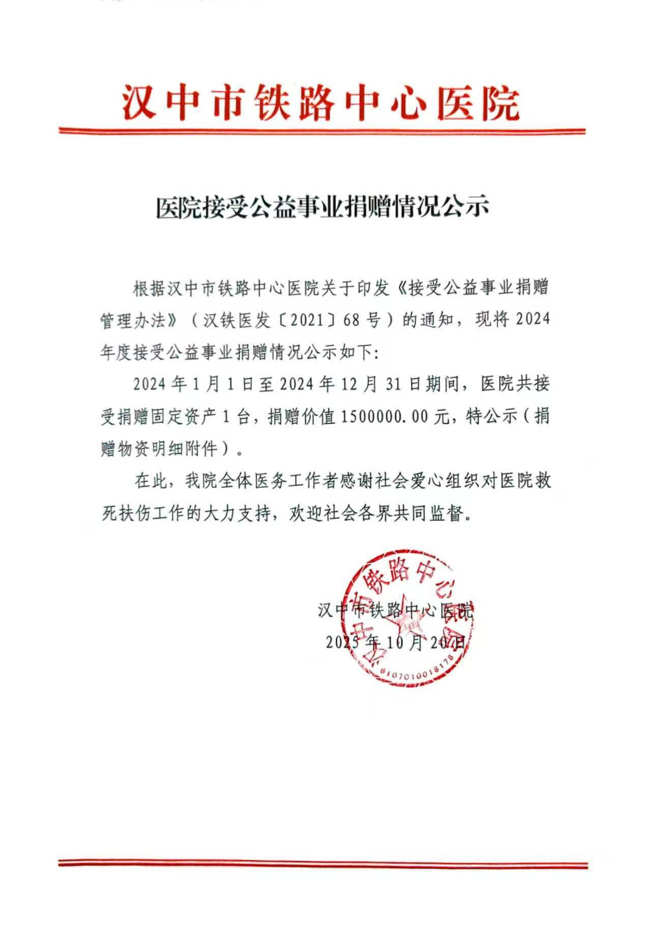 医院接受公益事业捐赠情况公示