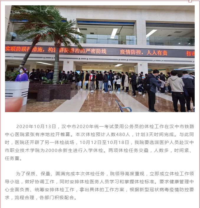 汉中市铁路中心医院有序开展全市新录用公务员体检工作
