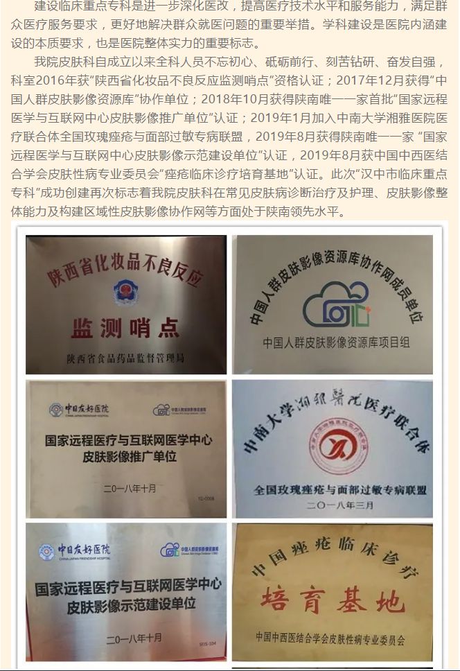 喜报!我院皮肤科成功创建为第三批“汉中市临床重点专科”